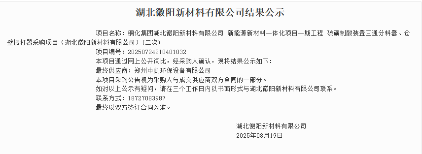 湖北徽陽新材料有限公司[三通分料閥設(shè)備采購項目]和[硫磺制酸裝置三通分料器、倉壁振打器采購項目]~從初次磨合到默契十足,這份信任是最好的勛章,未來繼續(xù)并肩創(chuàng)佳績!